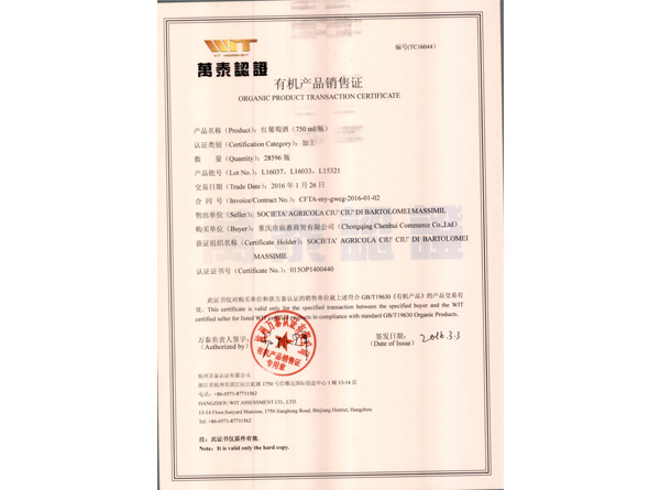 重慶第一單擁有有機認證資質原裝原瓶進口有機葡萄酒的進口商!